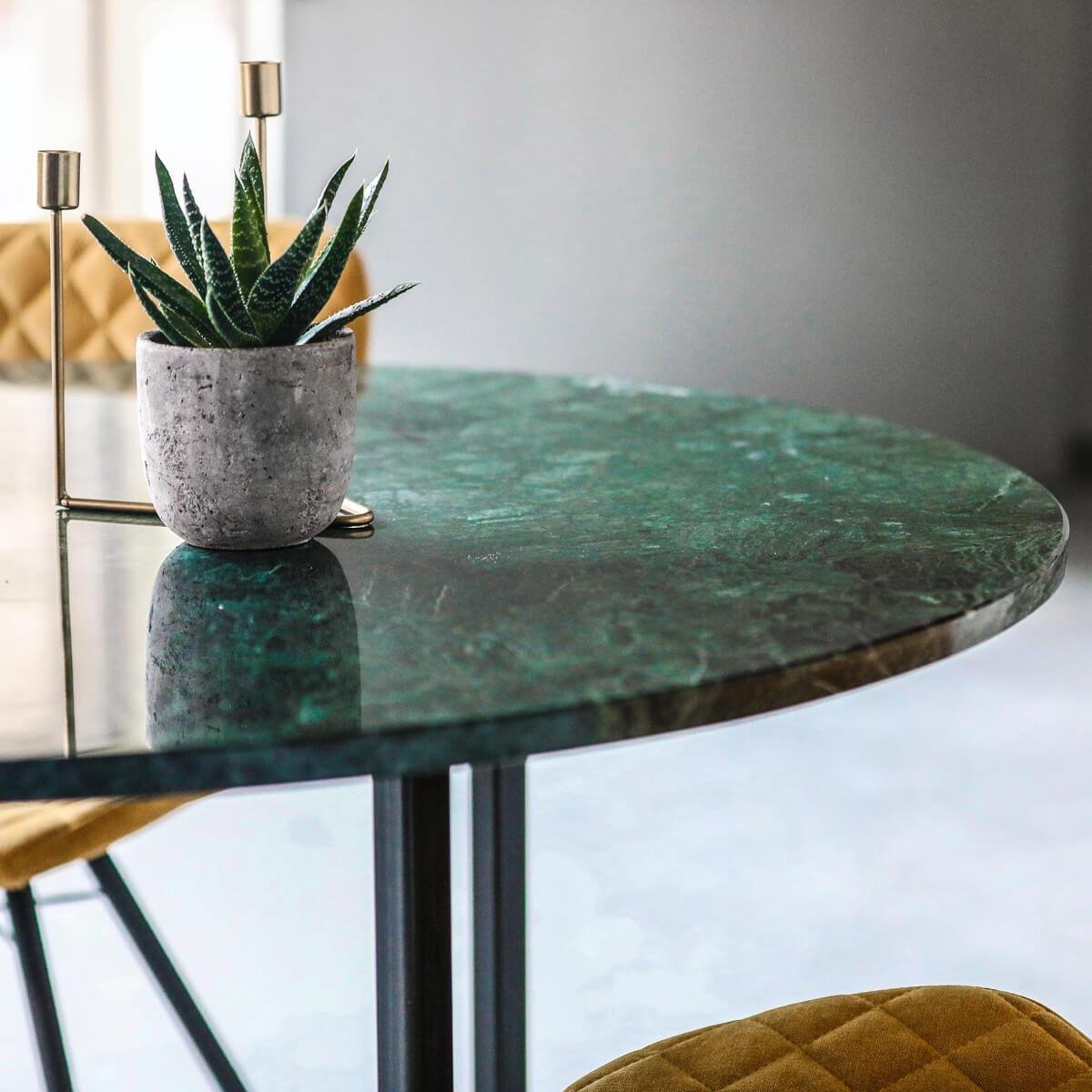Descubre la Mesa de Mármol Verde India de DagluHome, una pieza exclusiva que combina elegancia natural y diseño contemporáneo. Su cubierta de mármol verde auténtico importado desde la India destaca por sus vetas únicas y tonos profundos, convirtiéndola en un elemento decorativo de lujo para cualquier espacio. Este tipo de mármol es reconocido por su alta resistencia, durabilidad y su acabado sofisticado, ideal para ambientes modernos, minimalistas o industriales.